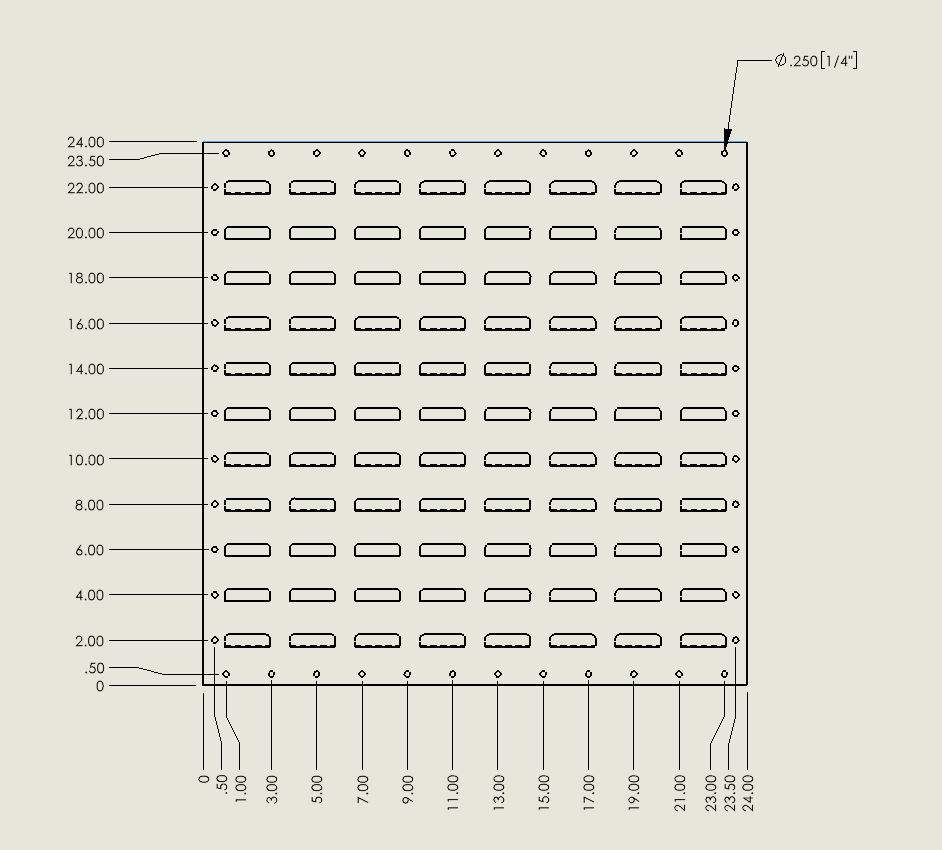 What is the mounting hole size and spacing on the Valley Craft F85227A3 Louvered Wall Panels (24" W x 24" H)?